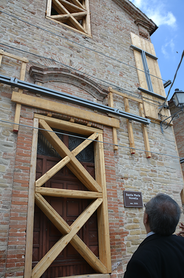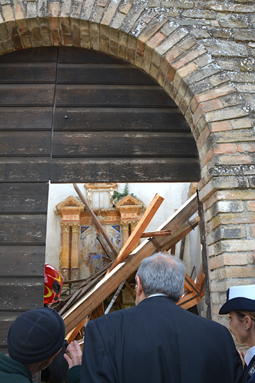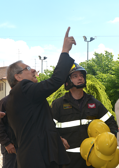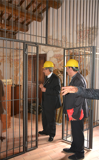 Qualche altro centinaio di metri e si era in cima al colle del paese da cui svetta l’antichissima Chiesa di San Michele Arcangelo (patrono del paese e sede della Parrocchia). A questa chiesa il gruppo dedicava un’attenzione più cospicua: sarà, infatti, la prima a ricevere i finanziamenti per quanto annunciato qualche giorno fa da Vasco Errani con l’ordinanza numero 23. Questa definisce “i criteri del primo programma d’interventi edili per garantire la continuità dell’esercizio di culto”. L’obiettivo è di consentire la loro riapertura per restituirli nella piena disponibilità delle comunità locali, già dal prossimo Natale (sempre che siano rispettate alcune regole da seguire).