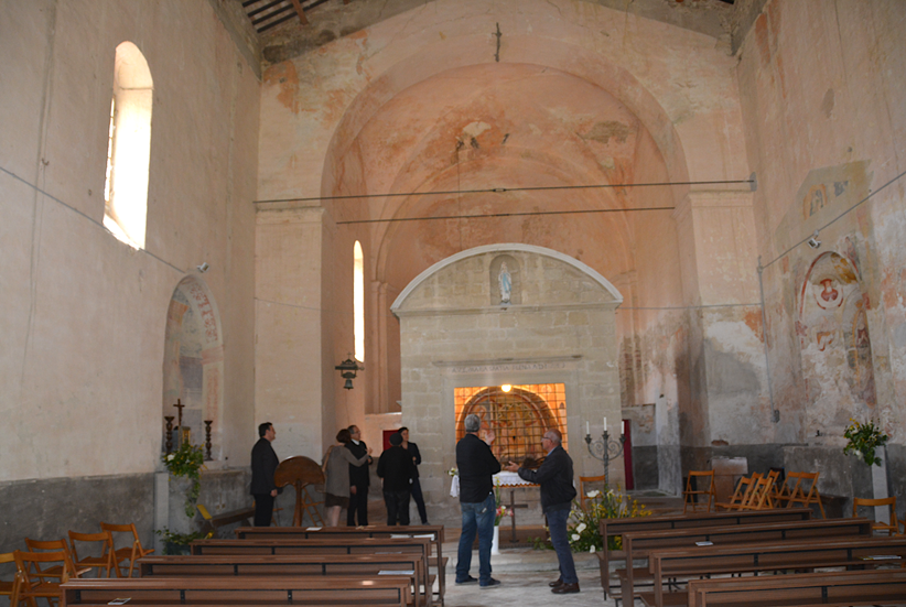 Dopo la prima visita all’unico luogo di culto del centro storico praticabile, la Chiesa dei Santi Pietro e Silvestro custode di pregiati affreschi, il gruppo si spostava nella Chiesa di San Gregorio Magno.