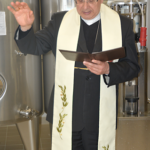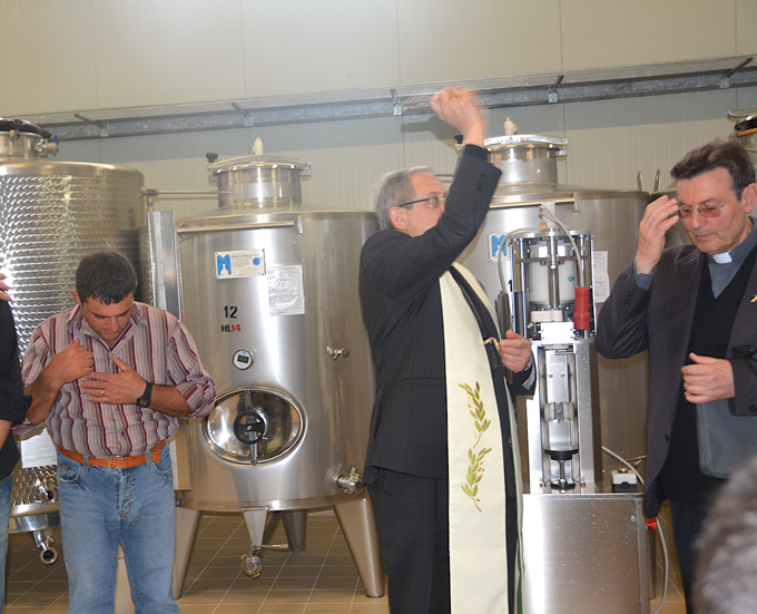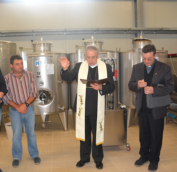 Ci si recava poi, ultimo impegno della mattinata, presso l’Azienda Vinicola “Casale Vitali” di Gabriele ed Elisabetta. Questa giovane, ma già premiatissima, azienda ha chiesto al Vescovo Carlo una benedizione speciale da impartire alle sue strutture ed egli li ha voluti esaudire. Questa Cantina è anche quella che si occupa annualmente della fornitura del suo pregiato vino in occasione della famosa e frequentata rievocazione storica montelparese in occasione di Sant’Antonio Abate: la “Festa del Baccalà”.