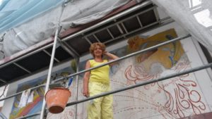 Uno ad Albignasego (Pd), il mio comune d’adozione, con le prime lezioni propedeutiche al Liceo di scienze umane Duca d’Aosta di Padova, dove sto realizzando un’opera 2,5×1,5 metri per il Progetto DUdA – Duca d’arte. L’altro, nelle Marche, a Cupramarittima dove sono cresciuta, con il primo corso in giugno, dal 4 all’11. La sede operativa sarà nella mia vecchia casa. Il dramma del terremoto sta ovviamente rallentando la programmazione del lavoro, altre sono le priorità dei Comuni come Ascoli Piceno che avrebbero accolto volentieri il cantiere. In questo senso, mi piacerebbe portare il primo affresco-cantiere ad Arquata: un cenno di rinascita che nel colore riporti la speranza.