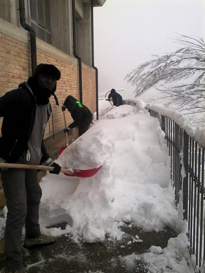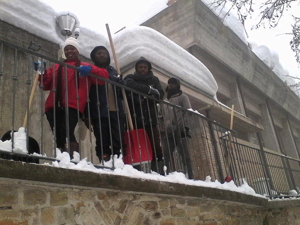 Nella difficile invernata di questo gennaio 2017 i ragazzi ospiti del Centro di Prima Accoglienza Profughi di Montelparo si sono dati da fare, insieme con altri volontari, per liberare il paese da montagne di neve! Loro che di neve non ne avevano vista mai! Poi, nella primavera si sono inseriti nel gruppo che, chiamato “i volontari del sabato” e coordinato da Tim Jones (titolare inglese dell’Hotel Leone di Montelparo), ha rimosso le tantissime macerie di piante crollate sotto il peso della neve del gennaio scorso aiutando a ripulire moltissime parti del paese.