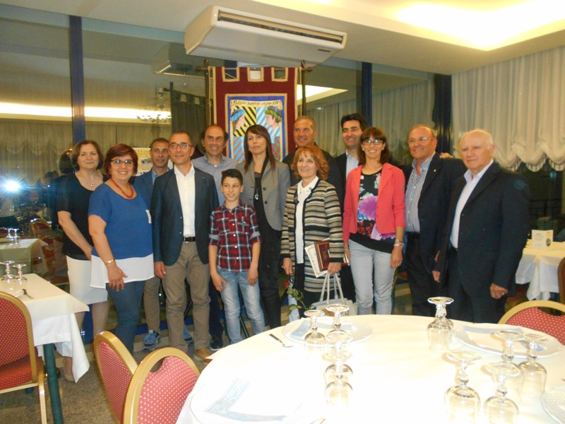 GROTTAMMARE – Presso il ristorante “Delfino blu” di Grottammare venerdì 19 maggio è stato presentato il Drappo del Palio dei Bambini disegnato da Traini Giorgio di Monsampolo del Tronto. Il Drappo, che sarà conteso nei giochi che si svolgeranno sabato 27 maggio presso la Fortezza di Acquaviva Picena, è stato scelto tra tutti quelli pervenuti alla sede dell’associazione Palio del Duca realizzati dai ragazzi degli Istituti Scolastici di Acquaviva Picena, Monsampolo del Tronto e Monteprandone. Presenti alla serata culinaria “Dell’Orto”, il presidente dell’ass.ne Palio del Duca cav. Nello Gaetani, il sindaco di Acquaviva Rosetti e il vice sindaco Balletta, il consigliere provinciale Malavolta, il sindaco di Monsampolo Caioni, il sindaco di Monteprandone Stracci, la dirigente scolastica di Acquaviva e Monsampolo Marziali e la referente del progetto di Monteprandone Giuseppina Coclite, l’autore del Drappo Traini Giorgio accompagnato dai genitori, il consiglio direttivo dell’associazione Palio del Duca e i soci e i collaboratori. I sindaci si sono detti tutti felici di collaborare a questo importante evento perché consolida il legame dei tre Comuni coinvolti e permette ai ragazzi di vivere la storia; inoltre si sono complimentati, soprattutto il sindaco di Monsampolo, con il giovane autore del disegno. Il cav. Gaetani a nome di tutti ha chiesto a Giorgio Traini di spiegare il suo lavoro e il ragazzo ha risposto: “ Ho ripensato alla storia del matrimonio dei giovani Forasteria e Rinaldo, ho pensato al Palio dei Bambini e un po’ ho preso spunto da qualche lavoretto su internet”. Il consigliere provinciale Malavolta ha detto: “ È una importante manifestazione questa del Palio dei Bambini perché promuove e mantiene viva la storia, la cultura e la tradizione del nostro territorio”. Il cav. Gaetani ha comunicato ai presenti due importanti novità di quest’anno: “Al banchetto medievale sarà presente quest’anno per la prima volta la Caccavella, cioè un piccolo cestino fatto di pasta nel quale saranno serviti ceci e gamberi. Quest’anno poi sarà realizzato un anello in oro e rubini che sarà consegnato dal conte Rinaldo alla sua sposa la duchessa Forasteria, l’anello di proprietà dell’associazione, verrà conservato da quest’ultima. Lo chef Fabrizio Camela ha preparato un ricercato menù a base di pesce e prodotti “dell’orto”, tutto contornato da vini locali.