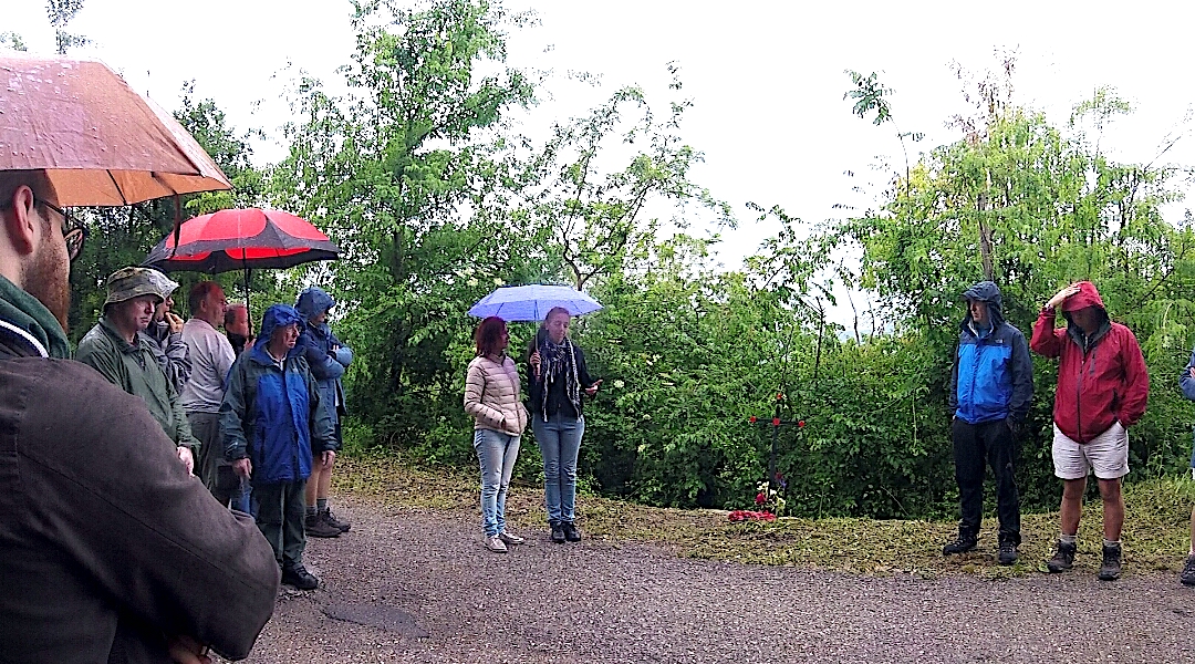 Erano qui anche: Roger Stanton, direttore della Elms WW2 che organizza tramite il socio Ian Mc Carty le camminate commemorative, Steve Sims, componente della Monte San Martino Trust, Anne Copley, che curo’ le ricerche sulla storia di Sidney “Giorgio”, una scolaresca di San Benedetto del Tronto e 3 ragazzi, con la loro insegnante provenienti da tre scuole di Modena, Bologna e Cesena, selezionati, grazie a un progetto internazionale, dalla Monte San Martino Trust, in collaborazione dell’”Istituto storico Parri Emilia Romagna”,