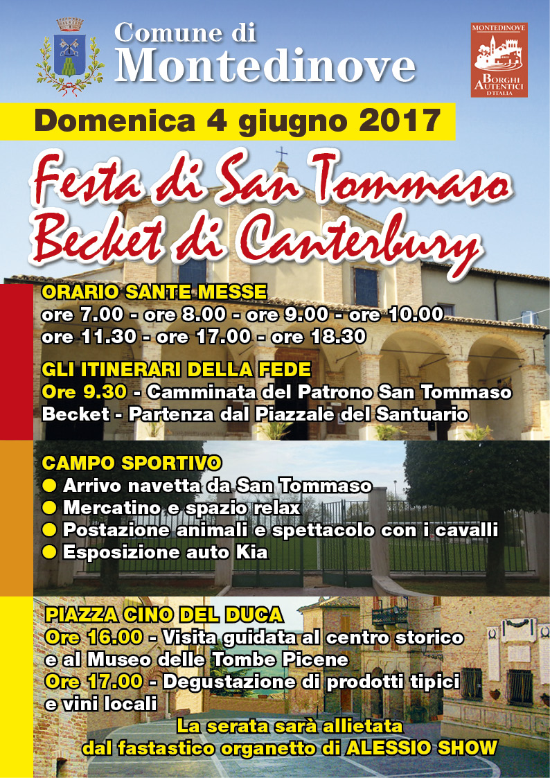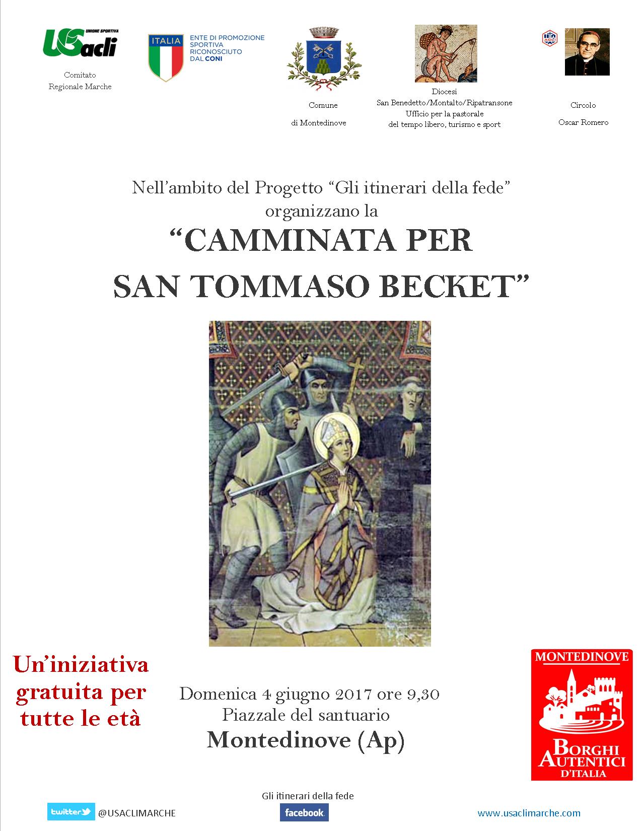 E’ infatti in programma la “Camminata per San Tommaso Becket”, una iniziativa che abbina la fede alla promozione dell’attività fisica e sportiva ed a Montedinove questa manifestazione coincide con un importante appuntamento per