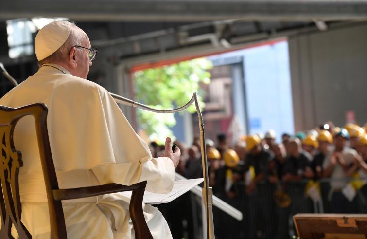 “L’obiettivo vero da raggiungere non è un reddito per tutti, ma il lavoro per tutti, perché senza lavoro per tutti non ci sarà dignità per tutti”. Ne è convinto il Papa, che rispondendo alle domande dei lavoratori dell’Ilva ha definito “ideologia” il pensare che “solo un terzo dei lavoratori lavoreranno e gli altri sono mantenuti da un assegno sociale”. “Il lavoro di oggi e di domani sarà diverso, forse molto diverso – pensiamo alla rivoluzione industriale – ma dovrà essere lavoro, non pensionati, lavoro!”, ha ammonito a braccio: “Si va in pensione all’età giusta, è un atto di giustizia, ma è contro la dignità delle persone mandarle in pensione a 35-40 anni, dargli l’assegno dello Stato e avanti. Ho da mangiare sì, ho la dignità no, perché non ho lavoro”. “Senza lavoro si può sopravvivere, ma per vivere occorre il lavoro, e la scelta è fra il sopravvivere o il vivere”, il grido d’allarme, soprattutto riguardo ai giovani. “Voi sapete la percentuale di giovani disoccupati dai 25 anni in giù che ci sono in Italia? Cercate le statistiche”, l’invito sempre a braccio: “E questa è un’ipoteca per il futuro, perché questi giovani crescono senza dignità, perché non hanno il lavoro che è quello che dà la dignità. Un assegno statale, mensile che ti faccia portare avanti la famiglia non risolve i problemi. Il problema va risolto col lavoro per tutti”.