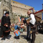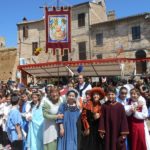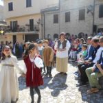 ACQUAVIVA PICENA – Ad Acquaviva Picena sabato 27 maggio si è svolto il Palio dei Bambini, che quest’anno ha visto come vincitori i ragazzi di Monsampolo del Tronto appartenenti al rione del Picchio. I rioni partecipanti sono stati quattro: aquila e civetta di cui fanno parte i bambini di Acquaviva, picchio di cui fanno parte i bambini di Monsampolo e il falco di cui fanno parte i bambini di Monteprandone. Il corteo storico è partito dalla palestra comunale di Acquaviva alle ore 9:00 per dirigersi in piazza del Forte dove si sono svolti i giochi. I cortei precisamente sono stati due: uno quello composto dai bambini delle scuole primaria e secondaria di Acquaviva e l’altro composto dai bambini di Monsampolo e Monteprandone. Ogni corteo è stato preceduto dai tamburini e dai gonfaloni dei rispettivi rioni, nel corteo Degli Acquaviva era presente la sposa: la duchessa Forasteia, mentre nel corteo Dei Brunforte, rappresentato per l’occasione dai bambini di Monsampolo e Monteprandone, era presente il conte Rinaldo futuro sposo. In piazza del Forte dopo la benedizione del Drappo da parte del parroco don Alfredo è iniziata la lettura della dote e corredo della sposa con conseguente controllo e accettazione da parte dei notai della famiglia Brunforte. Stipulato il matrimonio sono iniziati i giochi per la contesa del Drappo disegnato per quest’edizione da Traini Giorgio di Monsampolo. Dalle gare al tiro della fune, tiro delle palle, tiro dei cerchi, corsa con i sacchi e corsa con le pajarole piene di grano il punteggio più alto è stato del rione picchio. Tutta la manifestazione è stata intervallata dall’intrattenimento di Fabio Di Cocco, dai balletti della scuola di danza della dott.ssa Maria Luigia Neroni e dalla scuola di falconeria. Presenti al Palio dei Bambini i sindaci dei tre comuni interessati Rosetti, Caioni e Stracci, il consigliere provinciale Malavolta e la preside dott.ssa Marziali, il vice preside dott. Anti, i professori e gli insegnanti dei tre Istituti Scolastici. Durante la manifestazione sono stati consegnati gli attestati ai partecipanti al corso di tamburini tenuti dal M° Spinozzi.