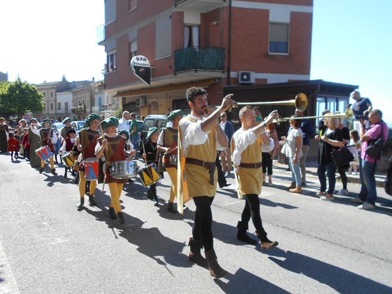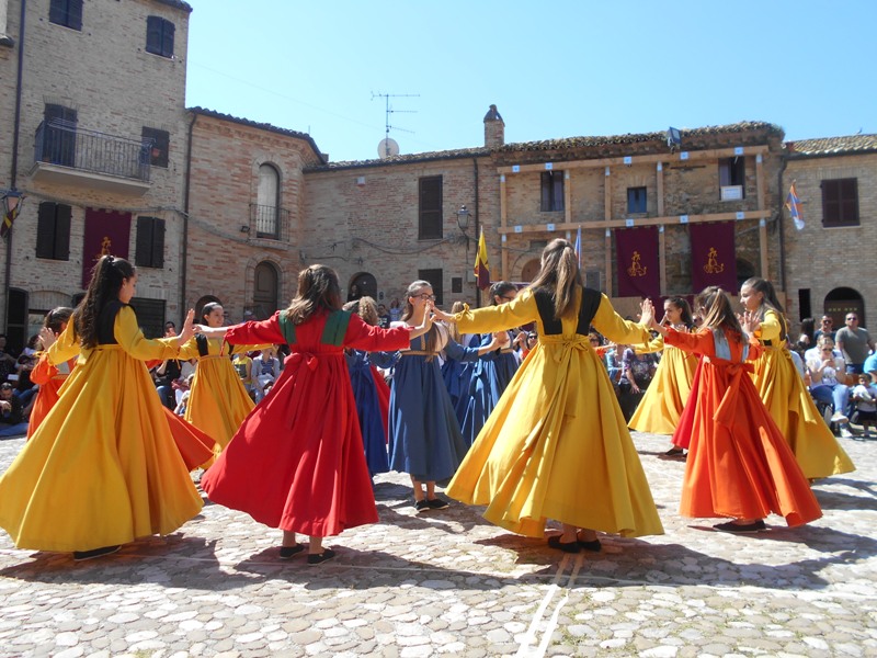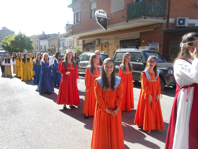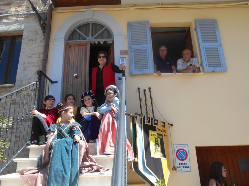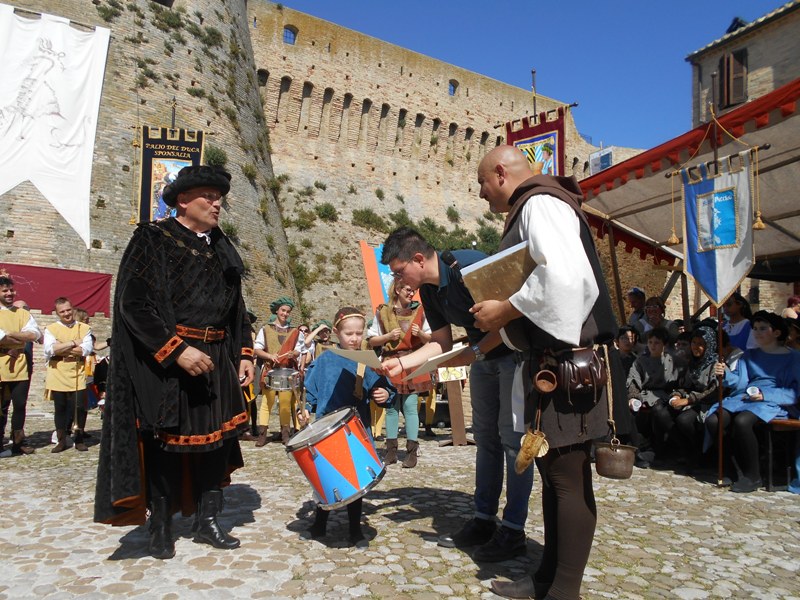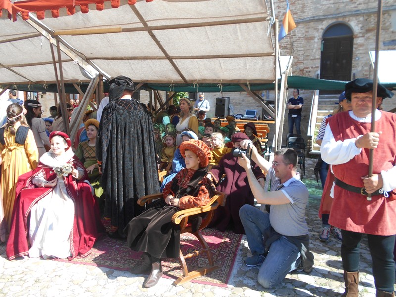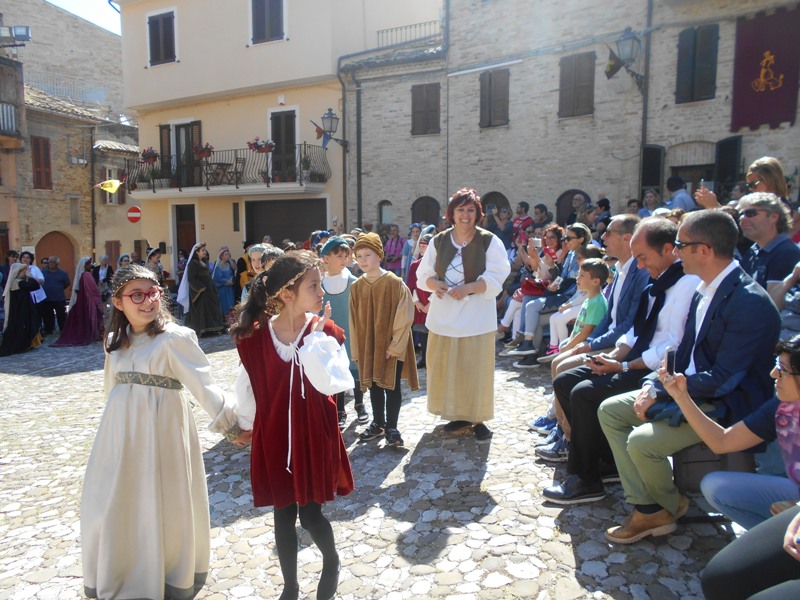 ACQUAVIVA PICENA – Ad Acquaviva Picena sabato 27 maggio si è svolto il Palio dei Bambini, che quest’anno ha visto come vincitori i ragazzi di Monsampolo del Tronto appartenenti al rione del Picchio. I rioni partecipanti sono stati quattro: aquila e civetta di cui fanno parte i bambini di Acquaviva, picchio di cui fanno parte i bambini di Monsampolo e il falco di cui fanno parte i bambini di Monteprandone. Il corteo storico è partito dalla palestra comunale di Acquaviva alle ore 9:00 per dirigersi in piazza del Forte dove si sono svolti i giochi. I cortei precisamente sono stati due: uno quello composto dai bambini delle scuole primaria e secondaria di Acquaviva e l’altro composto dai bambini di Monsampolo e Monteprandone. Ogni corteo è stato preceduto dai tamburini e dai gonfaloni dei rispettivi rioni, nel corteo Degli Acquaviva era presente la sposa: la duchessa Forasteia, mentre nel corteo Dei Brunforte, rappresentato per l’occasione dai bambini di Monsampolo e Monteprandone, era presente il conte Rinaldo futuro sposo. In piazza del Forte dopo la benedizione del Drappo da parte del parroco don Alfredo è iniziata la lettura della dote e corredo della sposa con conseguente controllo e accettazione da parte dei notai della famiglia Brunforte. Stipulato il matrimonio sono iniziati i giochi per la contesa del Drappo disegnato per quest’edizione da Traini Giorgio di Monsampolo. Dalle gare al tiro della fune, tiro delle palle, tiro dei cerchi, corsa con i sacchi e corsa con le pajarole piene di grano il punteggio più alto è stato del rione picchio. Tutta la manifestazione è stata intervallata dall’intrattenimento di Fabio Di Cocco, dai balletti della scuola di danza della dott.ssa Maria Luigia Neroni e dalla scuola di falconeria. Presenti al Palio dei Bambini i sindaci dei tre comuni interessati Rosetti, Caioni e Stracci, il consigliere provinciale Malavolta e la preside dott.ssa Marziali, il vice preside dott. Anti, i professori e gli insegnanti dei tre Istituti Scolastici. Durante la manifestazione sono stati consegnati gli attestati ai partecipanti al corso di tamburini tenuti dal M° Spinozzi.