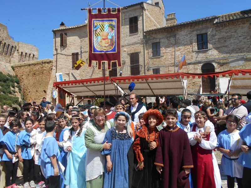 ACQUAVIVA PICENA – Ad Acquaviva Picena sabato 27 maggio si è svolto il Palio dei Bambini, che quest’anno ha visto come vincitori i ragazzi di Monsampolo del Tronto appartenenti al rione del Picchio. I rioni partecipanti sono stati quattro: aquila e civetta di cui fanno parte i bambini di Acquaviva, picchio di cui fanno parte i bambini di Monsampolo e il falco di cui fanno parte i bambini di Monteprandone. Il corteo storico è partito dalla palestra comunale di Acquaviva alle ore 9:00 per dirigersi in piazza del Forte dove si sono svolti i giochi. I cortei precisamente sono stati due: uno quello composto dai bambini delle scuole primaria e secondaria di Acquaviva e l’altro composto dai bambini di Monsampolo e Monteprandone. Ogni corteo è stato preceduto dai tamburini e dai gonfaloni dei rispettivi rioni, nel corteo Degli Acquaviva era presente la sposa: la duchessa Forasteia, mentre nel corteo Dei Brunforte, rappresentato per l’occasione dai bambini di Monsampolo e Monteprandone, era presente il conte Rinaldo futuro sposo. In piazza del Forte dopo la benedizione del Drappo da parte del parroco don Alfredo è iniziata la lettura della dote e corredo della sposa con conseguente controllo e accettazione da parte dei notai della famiglia Brunforte. Stipulato il matrimonio sono iniziati i giochi per la contesa del Drappo disegnato per quest’edizione da Traini Giorgio di Monsampolo. Dalle gare al tiro della fune, tiro delle palle, tiro dei cerchi, corsa con i sacchi e corsa con le pajarole piene di grano il punteggio più alto è stato del rione picchio. Tutta la manifestazione è stata intervallata dall’intrattenimento di Fabio Di Cocco, dai balletti della scuola di danza della dott.ssa Maria Luigia Neroni e dalla scuola di falconeria. Presenti al Palio dei Bambini i sindaci dei tre comuni interessati Rosetti, Caioni e Stracci, il consigliere provinciale Malavolta e la preside dott.ssa Marziali, il vice preside dott. Anti, i professori e gli insegnanti dei tre Istituti Scolastici. Durante la manifestazione sono stati consegnati gli attestati ai partecipanti al corso di tamburini tenuti dal M° Spinozzi.