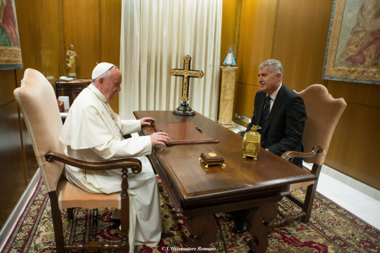 La presidenza tripartita della Bosnia-Erzegovina è composta da tre membri, esponenti dei tre gruppi etnici maggioritari, vale a dire un musulmano, un serbo e un croato. Papa Francesco aveva ricevuto Dragan Covic già nel 2014 e nel 2015 in Vaticano. Il 6 giugno del 2015 il Papa ha visitato anche Sarajevo.