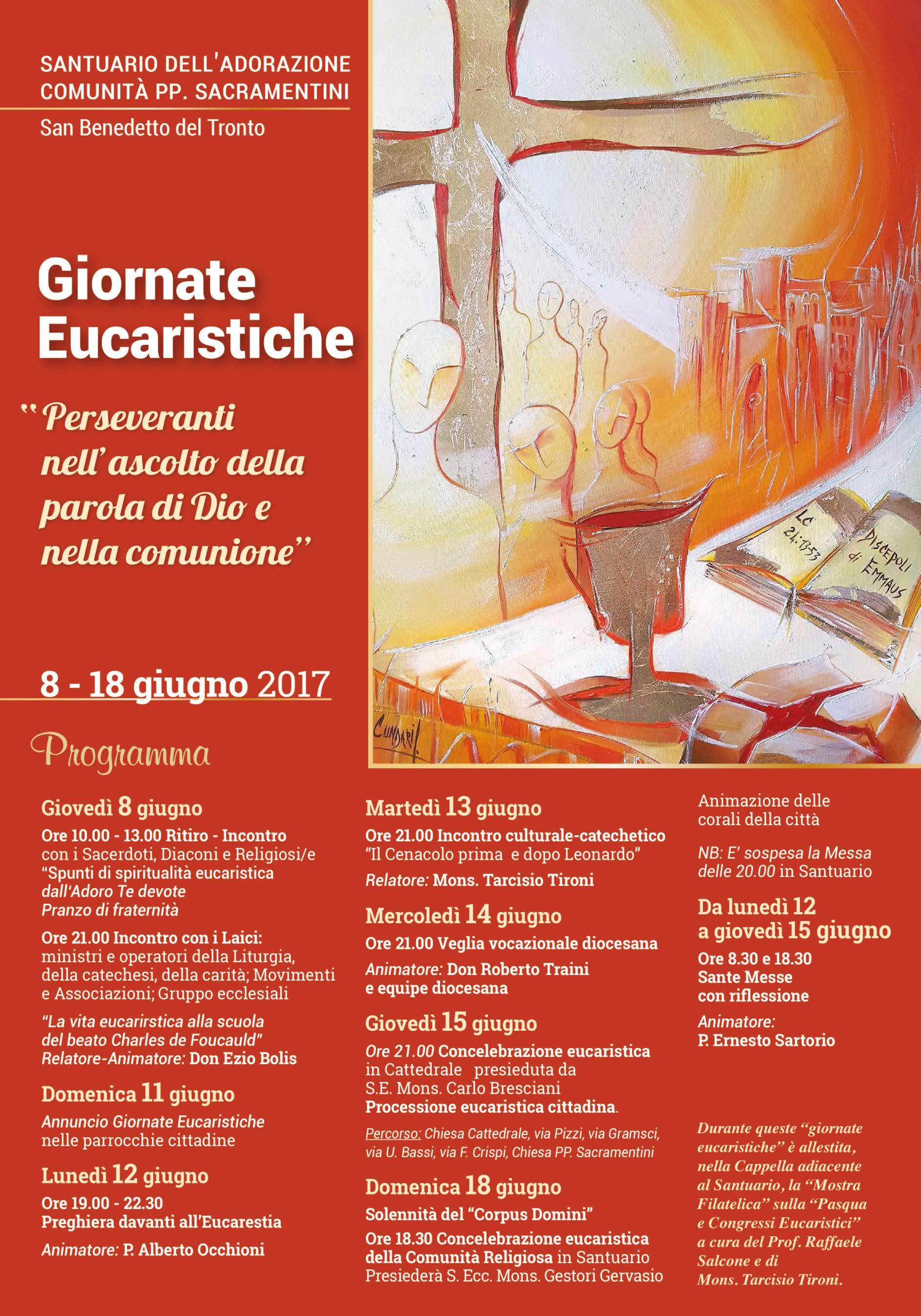 SAN BENEDETTO DEL TRONTO – In preparazione alla Solennità del “Corpus Domini”quest’anno la nostra Comunità Sacramentina, in comunione con la Chiesa locale, propone “Giornate Eucaristiche”.