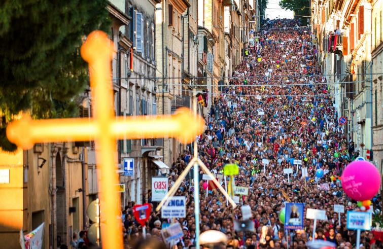 Un pensiero ai terremotati, ma anche ai migranti, ai cristiani perseguitati, a chi vive situazioni di sofferenza a causa della guerra, ai tanti giovani. E questo pellegrinaggio, quest’anno più di altre volte, ha toccato una dimensione internazionale con presenze straniere di pellegrini e di ospiti, dalla Svizzera alla Germania, dall’Angola al Ghana, dal Sudamerica all’Asia, dentro una proposta valida per tutti, che è quella di affrontare il cammino con una domanda di senso nel cuore che è al centro della missione evangelizzatrice della Chiesa. Quella Chiesa in uscita che vuole raggiungere ogni periferia del mondo. Da Panama è giunto anche l’arcivescovo del Paese che ospiterà la prossima Gmg del 2019 mons. Josè Domingo Ulloa Mendieta per raccogliere il testimone di una fede che non ha confini. Mentre da Fatima il presule della diocesi portoghese, mons. Antonio Marto, ha inviato il suo messaggio per ricordare i 100 anni delle apparizioni della Madonna e dare un segno tangibile della comunione viva di Fatima con la Santa Casa lauretana. L’Europa non è rimasta a guardare e, tramite il presidente del Parlamento, Antonio Tajani, ha fatto sapere “quanto sia impressionante assistere allo spettacolo di questa folla di persone provenienti da tutta Europa, giovani e meno giovani, che si riunisce per pregare, contemplare, trovare la speranza o rafforzare le proprie convinzioni”.