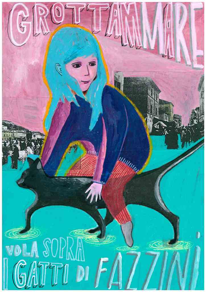 Il primo ha elaborato un’opera ricca di simbologie che allude al passato e al presente della città, con riferimenti a tradizioni, ambienti e personaggi locali. Il titolo è “Grottammare sopra i tetti”.