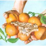 La seconda ha proposto una composizione che valorizza la tradizione agrumiera locale: una veduta del vecchio incasato viene “offerta” all’interno di una natura morta. Il titolo è “La Città sugli aranci”.