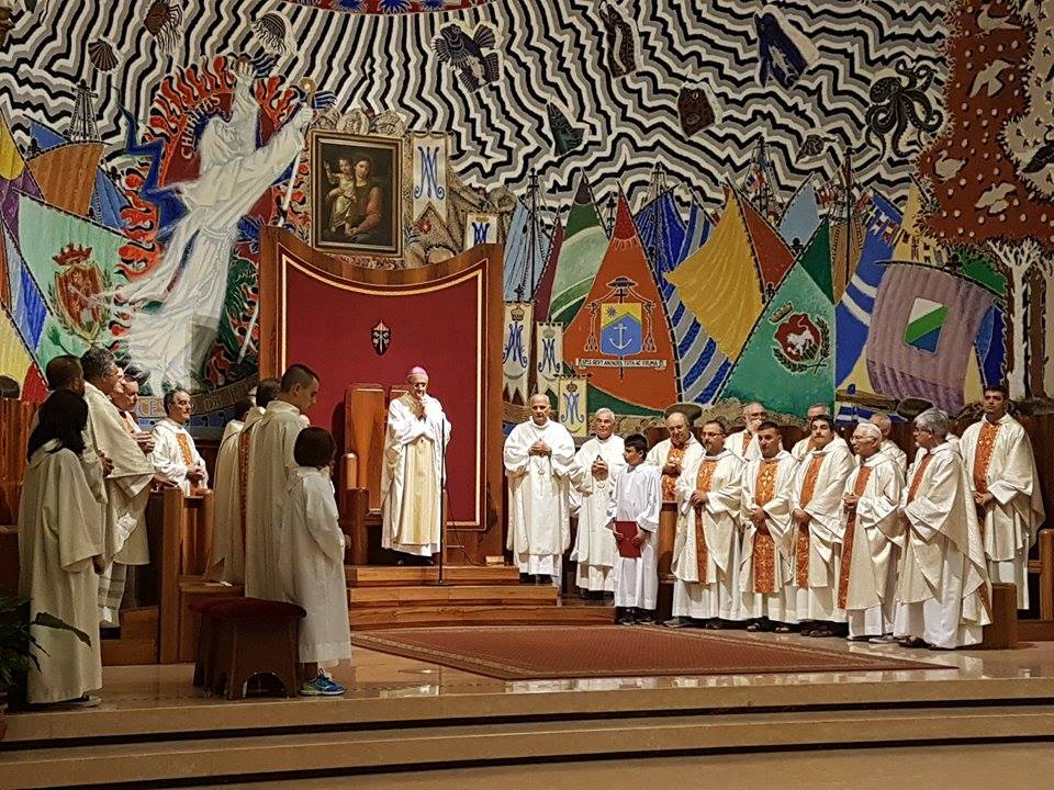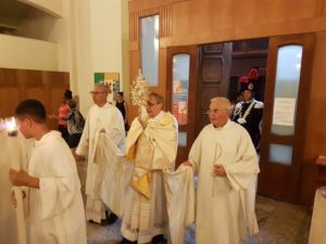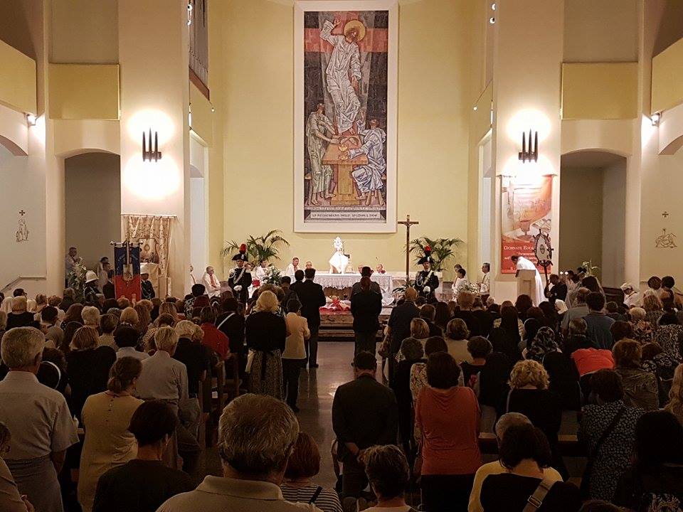 Anche noi dobbiamo essere perseveranti, tutte le domeniche, alla celebrazione eucaristica insieme con le nostre comunità parrocchiali. Con questa celebrazione e con la processione eucaristica, che seguirà attraverso le vie della nostra città, vogliamo riaffermare, tutti insieme, che Gesù sta al centro della nostra vita personale e comunitaria. Questo ci porta a riflettere su come noi viviamo la domenica: come giorno dello spezzare il pane in comune come facevano gli Apostoli, quindi come giorno della celebrazione eucaristica, o solo come giorno di divertimento e di svago? La celebrazione domenicale dell’Eucaristia del Signore sta al centro della vita della Chiesa. «Il giorno di domenica in cui si celebra il mistero pasquale, per Tradizione apostolica deve essere osservato in tutta la Chiesa come il primordiale giorno festivo di precetto» (CCC 2177). «Ricordati del giorno di sabato per santificarlo» raccomanda il Signore a Israele (Es 20, 8-10). Il sabato è il giorno in cui Dio, completata la creazione riposò; la domenica è il giorno in cui il Signore Gesù è risorto e ha rinnovato la creazione, riscattandola dal peccato con la potenza del suo amore. La parrocchia è il luogo in cui tutti i fedeli sono convocati per la celebrazione domenicale dell’Eucaristia. «La parrocchia inizia il popolo cristiano all’espressione ordinaria della vita liturgica e lo raduna in questa celebrazione; insegna la dottrina salvifica di Cristo; pratica la carità del Signore in opere buone e fraterne (CCC 2179). La partecipazione alla celebrazione comunitaria dell’Eucaristia domenicale è una testimonianza di appartenenza e di fedeltà a Cristo e alla sua Chiesa. In questo modo i fedeli attestano la loro comunione nella fede e nella carità. Essi testimoniano al tempo stesso la santità di Dio, la loro speranza nella salvezza e si rafforzano vicendevolmente sotto l’assistenza dello Spirito Santo (cfr. CCC 2182). L’adorazione eucaristica, pratica lodevole del cristiano sia quando l’eucaristia è solennemente esposta sia quando è racchiusa nel tabernacolo, ha il suo pieno significato se è una continuazione della meditazione della Parola di Dio e del mistero della redenzione celebrato nella santa messa domenicale. La logica consumistica che avvolge il mondo sta consumando anche la domenica come giorno della comunità cristiana. Facciamo in modo che il consumismo non ci porti via anche Gesù e, con lui, anche i momenti importanti di vita familiare vissuti insieme la domenica attorno all’altra mensa: quella delle nostre case. C’è una felice circolarità tra la mensa eucaristica e la mensa di casa. Come condividere la mensa eucaristica costruisce la comunità cristiana, così condividere la mensa di casa costruisce la famiglia: la comunità cristiana, attorno all’altare del Signore; la comunità familiare, attorno alla tavola dei genitori. Se teniamo uniti questi due momenti di vita: la famiglia che insieme partecipa all’eucaristia domenicale e la famiglia che la domenica condivide la gioia dello stare insieme festoso, ne trarremo vantaggio tutti, sia singolarmente sia comunitariamente e la gioia del Signore sarà piena.