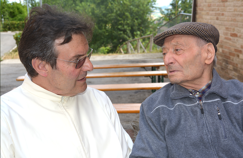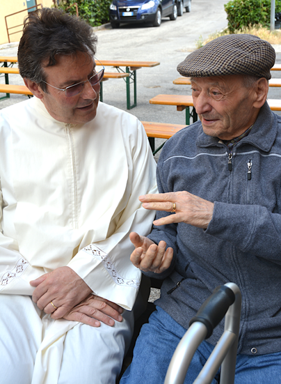 Il Priore, in attesa di iniziare la celebrazione, non ha mancato di dedicare il suo tempo colloquiando amorevolmente con i giovani e gli anziani che qui hanno la loro dimora!