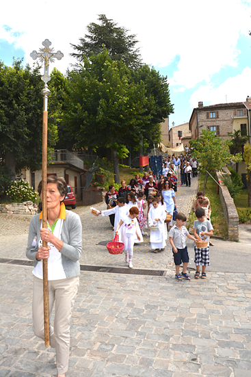 Non è mancata la tradizionale infiorata per le vie del paese attraversate e non è mancato il bellissimo e commovente lancio dei petali di fiori fatto dai bambini che precedevano il sacramento e fino alla Chiesa di destinazione.