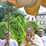 Una volta terminata la Santa Messa, si è formato il corteo che ha portato in processione, il sacramento presso l’unica Chiesa agibile del Paese: quella dei Santi Pietro e Silvestro dove il Priore ha impartito la solenne benedizione!