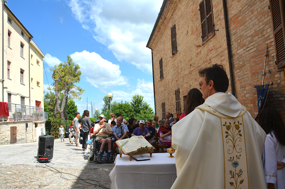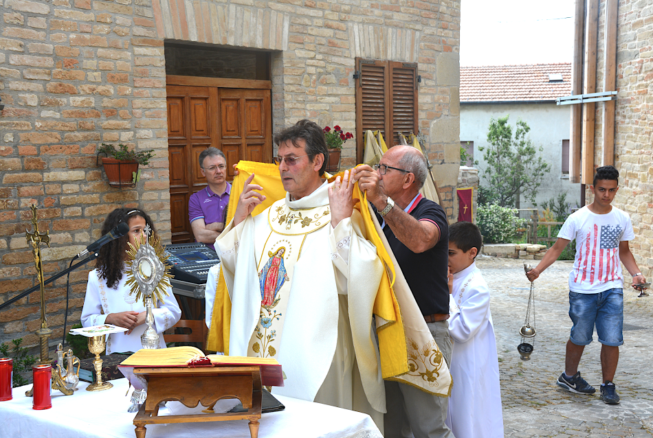 Questi sono, tra gli altri, alcuni dei motivi che hanno spinto il Priore –Parroco di San Michele Arcangelo di Montelparo, Padre Agostino Maiolini (come sempre assistito dal suo vice Padre Giovanni Mazzoni), a voler celebrare la Santa Messa, in una giornata così rievocativa come quella del Corpus Domini, proprio nella Piazza che dà accesso, da una parte, all’Istituto “G. Mancinelli” e, dall’altra, alla Casa di Riposo “Francesco Antolini”.