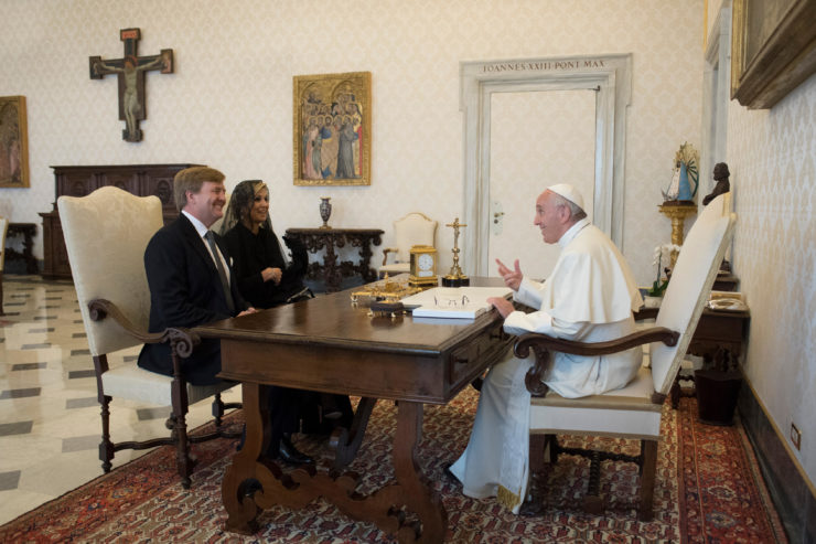 E’ stato il terzo incontro tra papa Francesco e la coppia reale. A spiegare la certa complicità che si è instaurata potrebbe essere il fatto che la regina non solo è cattolica ma inoltre argentina, nata del resto a Buenos Aires, come il Pontefice. Il re invece è protestante, come vuole la tradizione della Casa degli Orange-Nassau.