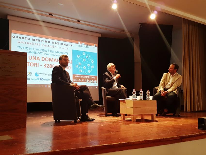 Altri relatori del Quarto Meeting nazionale giornalisti cattolici e non: Alessandra Ferraro Vice Capo Redattore Rai, il presidente dell’O.d.G. delle Marche Dario Gattafoni, il consigliere regionale Piero Celani, il Presidente FISC Don Adriano Bianchi, Emanuela Vinai dell’ Ufficio Comunicazioni Sociali CEI, don Giovanni Scarpino direttore Ufficio Regionale Comunicazioni Sociali e Cultura C.E.C., Andrea Domaschio, capo redattore Radio InBlu, il regista Rai don Dino Cecconi, Massimiliano Padula presidente AIART, il capo redattore de Il Sole 24 Ore Daniele Bellasio.