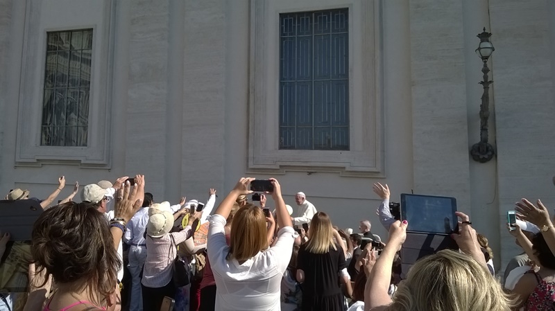 Al termine dell’udienza, il gruppo si è radunato all’esterno della piazza dove, con grande emozione, due acquavivani hanno raccontato di aver avuto, grazie ad una serie di circostanze fortuite, la possibilità di un contatto diretto con il pontefice che con sguardo infinitamente amorevole ha lasciato una carezza e una benedizione ad entrambi.