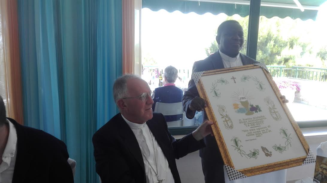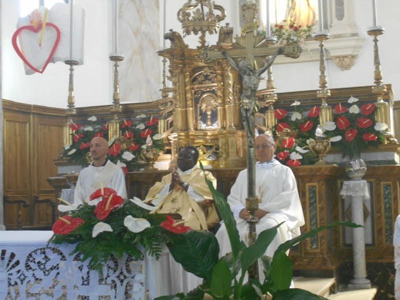 ACQUAVIVA PICENA – Domenica 2 luglio la comunità di Acquaviva Picena si è stretta intorno a padre Emil Kisimba per festeggiare insieme il venticinquesimo anniversario di ordinazione sacerdotale. Alla santa Messa delle ore 10:00 in convento erano presenti, oltre ai numerosi fedeli, anche tanti religiosi, il priore del convento di Acquaviva padre Luigi e il parroco don Alfredo. Padre luigi ha salutato all’inizio della celebrazione tutta la comunità e a nome di tutti i religiosi agostiniani ha fatto gli auguri a padre Emil. L’omelia invece è stata di padre Gregory Cibwabwa: “Io e padre Emil ci siamo incontrati tante volte sia ad Acquaviva sia in altri luoghi, come per esempio a Roma. Ci siamo incontrati anche prima di diventare religiosi. Ora mi ha chiesto di fare l’omelia in occasione della sua festa. Cosa dire….Comincio con il ricordare cosa disse don Mazzolari parlando della Messa: “La Messa è il Calvario, le prime Messe sono le pendici, facili e invitanti, ma poi salendo il cammino diventa sempre più impervio e sassoso”. Questo però non ha indebolito la fede di padre Emil. Lui sa che il Signore ci chiede un’adesione totale a lui, Egli ci vuole tutti per Sé, a tempo pieno. Vuole che noi facciamo vivere Cristo nella nostra vita, in modo che anche chi incontriamo sulla nostra strada possa vivere della vita di Cristo. Cosa si sarà chiesto padre Emil all’inizio della sua vocazione? Perché farmi religioso? È la domanda che si pone il novizio, ma la risposta è : “Non voi avete scelto me, ma io ho scelto voi”. L’Amore verso Dio è il più alto, il più vero. Carissimo padre Emil nel ringraziarti per il tuo servizio vogliamo ringraziare il Signore per averci donato un pastore così zelante nel suo servizio nella Chiesa”. Don Alfredo, dopo aver letto una lettera di Sua Eccellenza Mons. Gestori dove ha espresso sinceri auguri per il venticinquesimo anniversario sacerdotale, ha regalato a padre Emil una casula bianca in ricordo del lieto giorno. Al termine della Messa padre Emil ha ringraziato tutti i presenti e quelli che si occupano delle necessità del convento invitando poi tutti al piccolo buffet allestito in giardino. La festa è proseguita con un pranzo in onore del festeggiato.