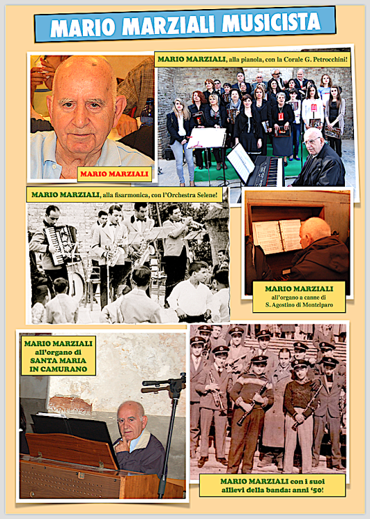 Musicista (grande interprete con i più svariati strumenti: pianoforte, clarinetto, fisarmonica, organo a canne…), autore (una per tutte l’ormai famosa “Nella Notte di Natale” che dal 24 dicembre 1950 risuona, nell’occasione della natività, costantemente nelle nostre chiese. Essa viene cantata, via via, dal miglior interprete del momento-voce bianca, ma non solo-!), formatore musicale di generazioni intere di ragazzi! Tutto questo mentre, per sopravvivere, Mario svolgeva le funzioni di direttore del locale Ufficio Postale! La sua giornata era, perciò, intensissima.