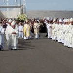 La mattinata della terza giornata del pellegrinaggio diocesano è stata caratterizzata dalla celebrazione eucaristica internazionale avvenuta sul sagrato del Santuario di Fatima. La spianata era infatti gremita da tanti gruppi di fedeli pellegrini provenienti da tante nazioni delle diverse parti del mondo. A presiedere la celebrazione è stato monsignor Paolo Pezzi primo vescovo della Chiesa cattolica in Russia.