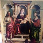 Il dipinto a olio di cui stiamo parlando, e che raffigura appunto “La Madonna in trono con Bambino”, era posto proprio sopra all’altare maggiore di questa chiesa.