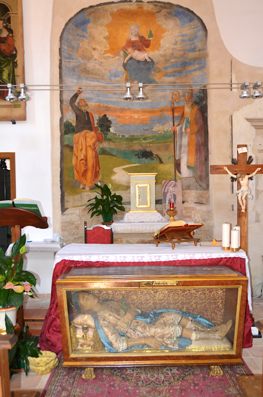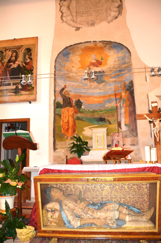 Nelle foto che pubblichiamo si può notare, oltre al dipinto succitato, anche la presenza nella Chiesa dei Santi Pietro e Silvestro dell’urna del corpo di San Paolino Martire. Anch’essa è stata qui portata per l’occasione dei festeggiamenti, a lui dedicati, che la comunità parrocchiale ha indetto per domenica prossima!