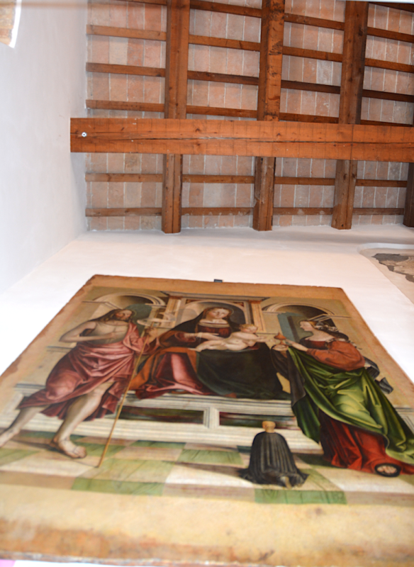 Qui ha trovato una degnissima sistemazione a fianco degli affreschi esistenti e in un locale attrezzatissimo e dotatissimo di sitemi d’allarme all’avanguardia!