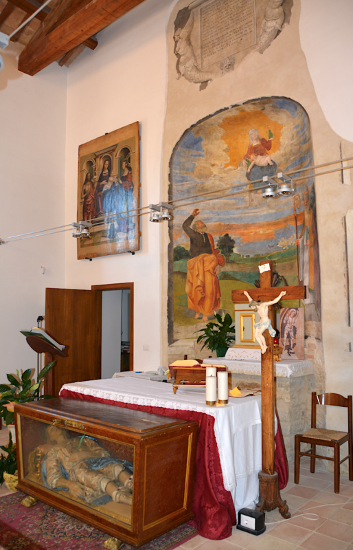 Qui ha trovato una degnissima sistemazione a fianco degli affreschi esistenti e in un locale attrezzatissimo e dotatissimo di sitemi d’allarme all’avanguardia!
