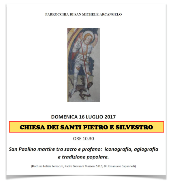 Anche per chiarire meglio la situazione, è stato indetto quest’anno, presso la Chiesa dei Santi Pietro e Silvestro di Montelparo, il convegno “San Paolino Martire tra sacro e profano: iconografia, agiografia e tradizione popolare”!
