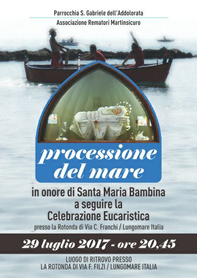 In preparazione alla festa sabato 29 luglio alle ore 20.45 dalla rotonda di via FIlzi si terrà la processione del mare a cui seguirà la Santa Messa.