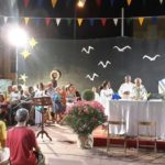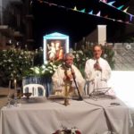L’ultima domenica di Luglio è solo il momento conclusivo della festa. In realtà da oltre trent’anni la festa inizia due settimane prima con la “Peregrinatio Mariae”, giorni in cui l’immagine della Madonna della Marina cammina per le vie del centro arrivando nelle zone più lontane della parrocchia. Si cammina sgranando le decine del S. Rosario, pregando e cantando. La sera successiva al trasferimento dell’immagine in una delle quattro zone, si vive la Santa Messa in un luogo preparato e addobbato dai parrocchiani. Ho citato all’inizio le strofe del canto perché è significativo ed intenso. Si, Maria chiama gli uomini e le donne, i bambini ed i giovani. Chiama passando tra e nei luoghi del quotidiano. E se cinquanta o anche cento anni fa questo canto evocava immagini consuete di una fede semplice e devota, oggi la sfida è audace e seria.
