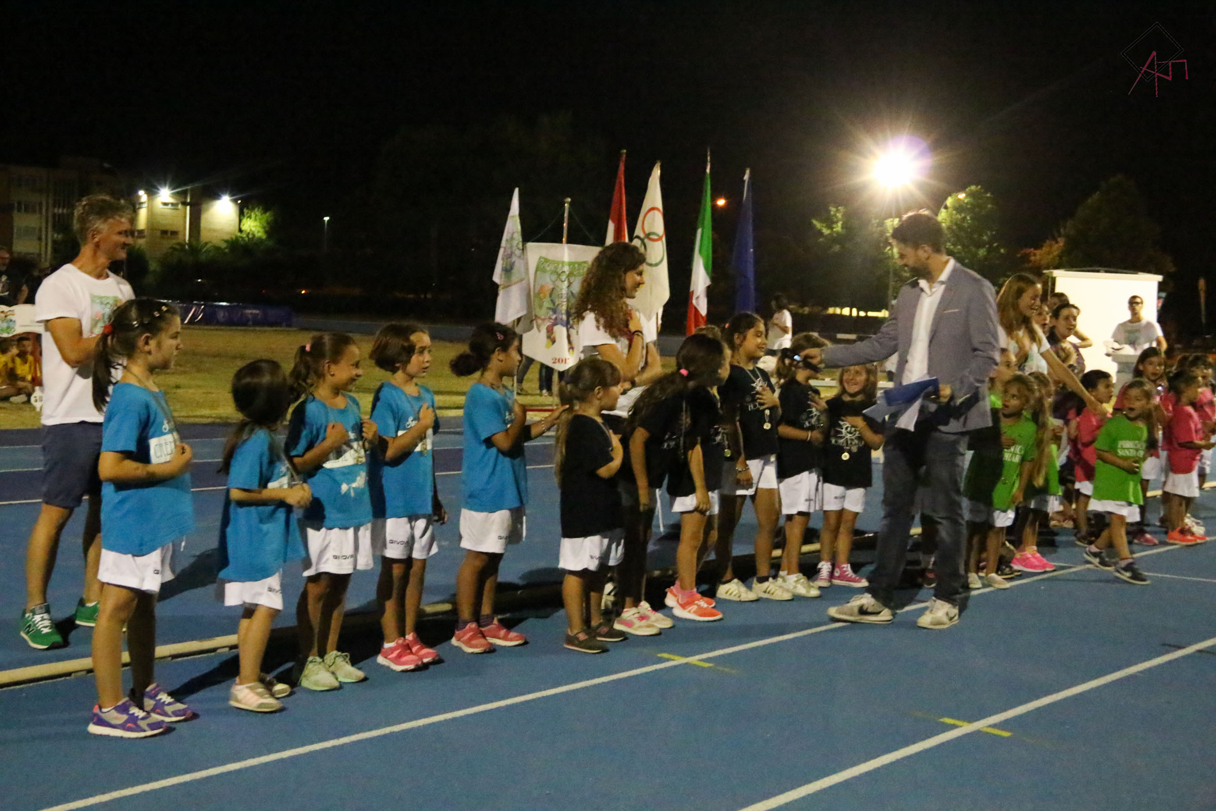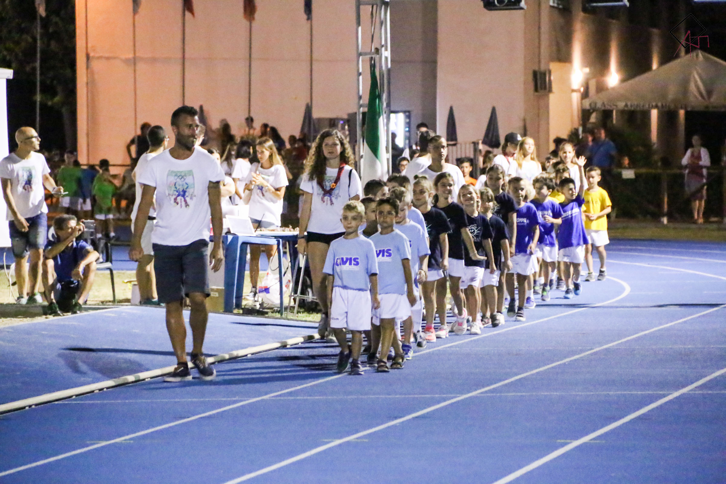 La serata di premiazione si è aperta alle 21.30 con la sfilata dei piccoli atleti, seguiti da due testimonial portabandiera d’eccezione: la campionessa italiana di scherma Valentina Vezzali con il vessillo olimpico ed il campione europeo Daniele Capriotti, ct della nazionale di volley femminile islandese, con il drappo europeo. Gli atleti sono stati accolti con un fragoroso applauso dalle straripanti tribune del campo di atletica leggera sambenedettese. Ha poi avuto inizio la parte ufficiale della cerimonia con la premiazione delle squadre e l’ammainabandiera.