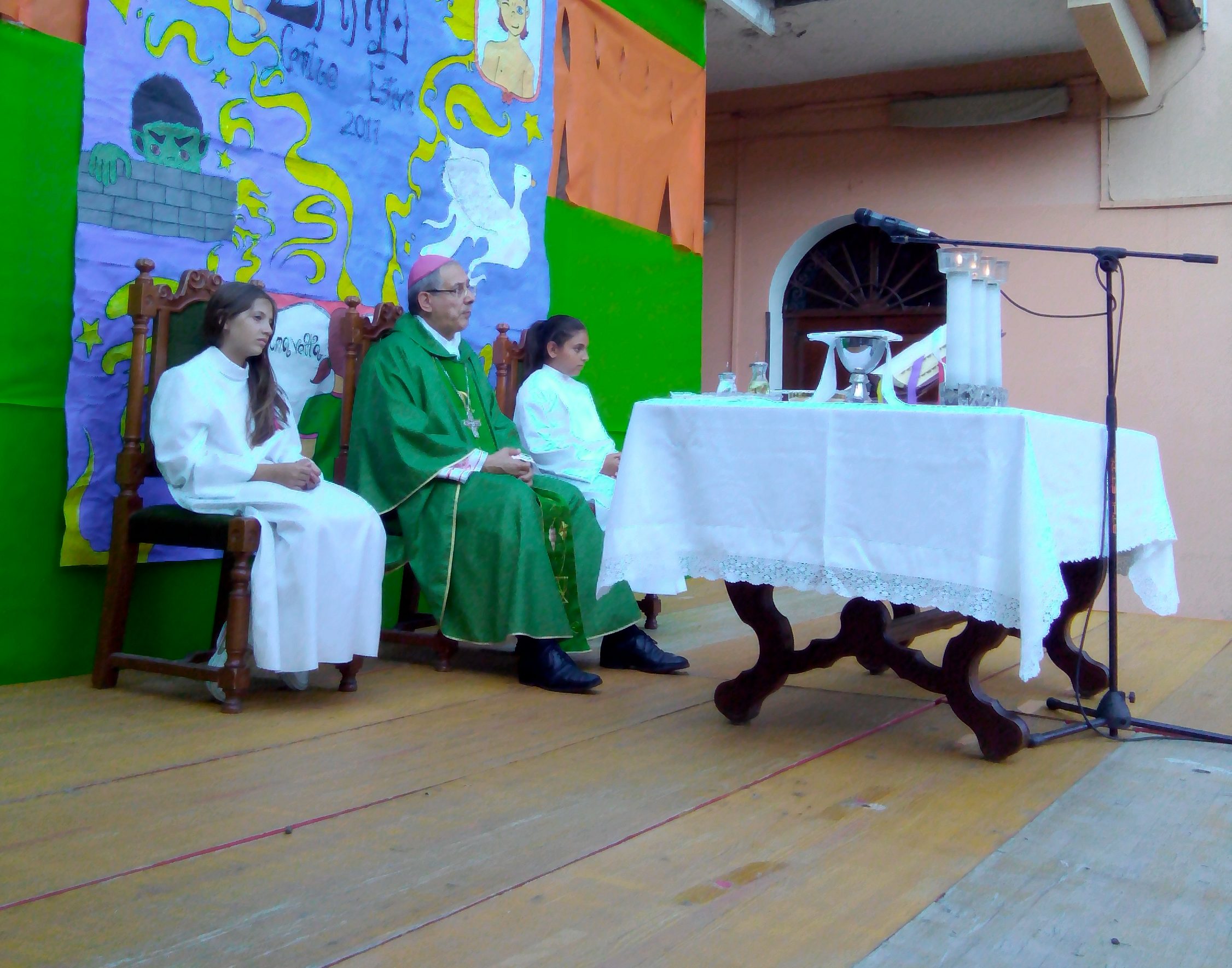 La festa è iniziata con la santa messa celebrata dal nostro vescovo mons. Carlo Bresciani. Nell’omelia che i ragazzi e i bambini hanno seguito con particolare attenzione, il vescovo ha preso spunto dalla frase centrale del Centro Estivo: In Wonder Land, nel mondo meraviglioso.