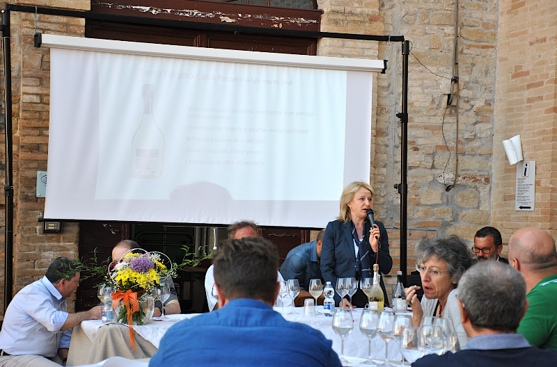 Il concetto di valorizzazione dei prodotti locali veniva fermamente ribadito dalla presidente dell’Associazione “Marchigianamente” Dunia Romoli e come ultimo intervento il docente dell’AIS di Fermo e Porto San Giorgio Stefano Isidori terminava con una chiara ed eloquente spiegazione delle peculiarità organolettiche dei metodi Charmat e Champenoise inserendo anche notizie storiche ed aneddoti.