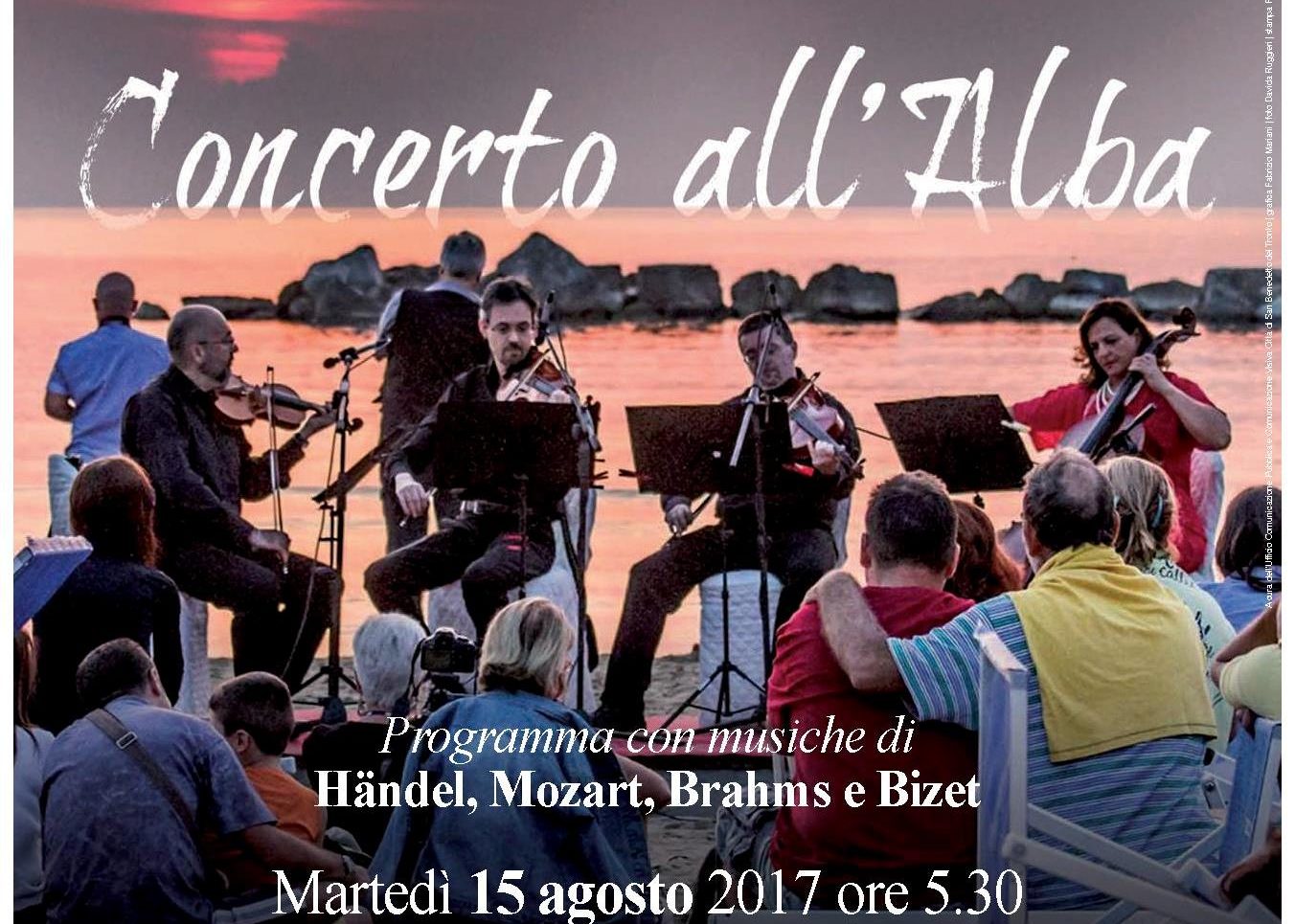 L’evento avrà luogo sulla battigia antistante la concessione balneare numero 13, (Lungomare Trieste n. 27), dove si esibirà il Quartetto d’Archi “Antonio Vivaldi”, composto dai docenti dello storico istituto musicale sambenedettese (Piergiorgio Troilo e Paolo Incicco, violini; Emiliano Finucci, viola; Daniela Tremaroli, violoncello).