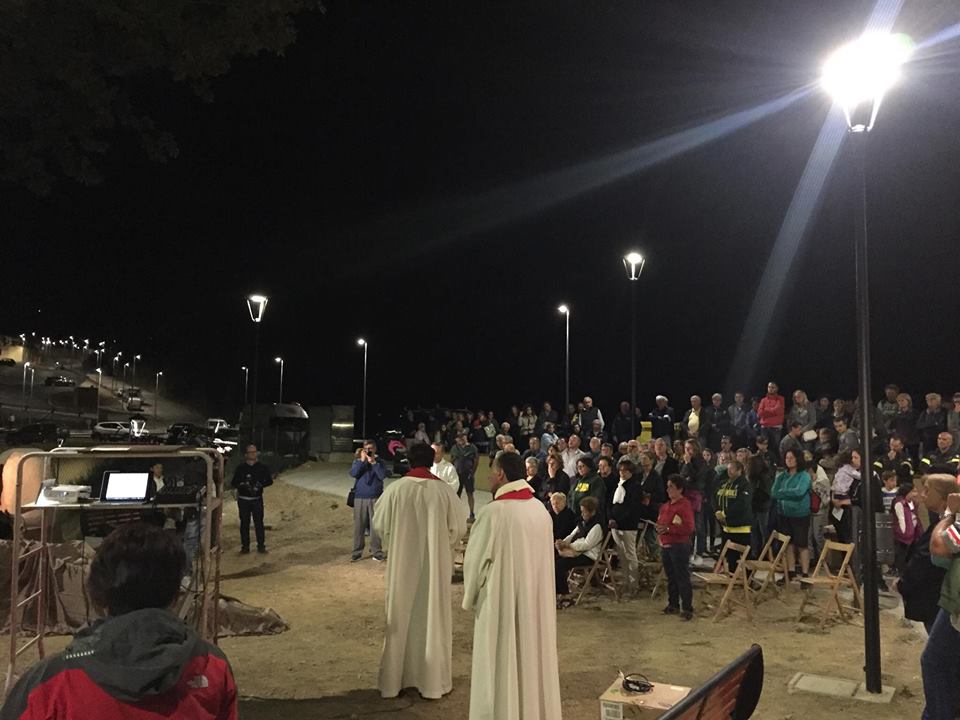 ACCUMOLI – Ad un anno da terremoto, nel giorno del silenzio, abbiamo partecipato alla via crucis che si è tenuta ad Accumoli, ieri, mercoledì 23 agosto. E già buio quando arriviamo ad Accumoli. Le strade per il paese sono presidiate dall’esercito, ma subito oltre, sulla collina si intravedono i nuovi moduli abitativi. Tanta gente si è radunata per un momento di preghiera.