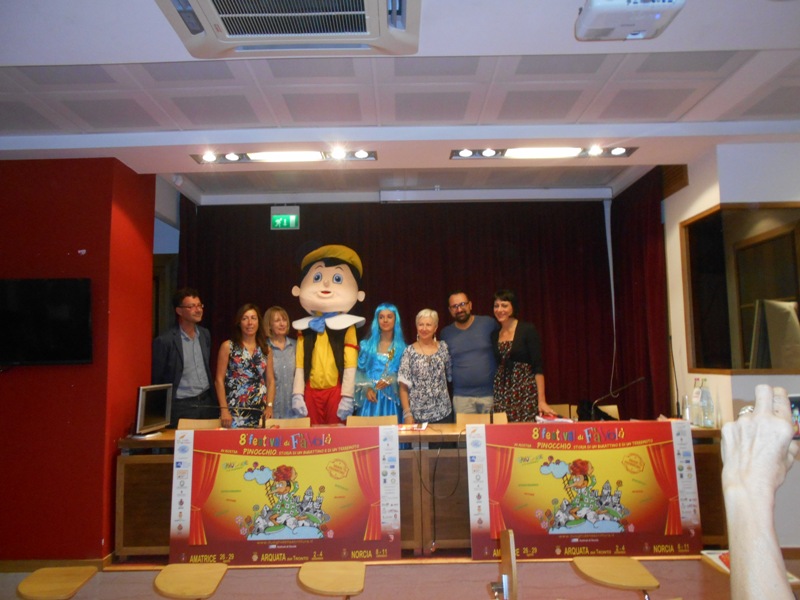 Carboni ha invece detto: “ Il festival di FàVolà si è sempre svolto a San Benedetto del Tronto, quest’anno abbiamo voluto portarlo nei luoghi del sisma perché ci siamo accorti che non potevamo fare finta di niente. I bambini lì hanno bisogno di un festival come questo. FàVolà è atteso tutto l’anno dai bambini con entusiasmo. Abbiamo recuperato il personaggio di Pinocchio che è stato il protagonista di FàVolà di quattro anni fa perché esso rappresenta più di quello che sembra. Il festival sarà diviso in due momenti: in una mostra e in eventi collaterali. La mostra vedrà l’approfondimento del racconto di Collodi, un’analisi più approfondita dell’autore, la presenza di Pinocchio nel mondo della televisione, della musica e del cinema. Altri momenti riguarderanno l’animazione, i laboratori, teatro e spettacoli vari. Anche la realizzazione di un quadro/tappeto di fiori caratterizzerà il festival. Non vi nascondo che all’inizio abbiamo avuto difficoltà a reperire fondi affinché si realizzasse FàVolà, poi Sergio Serafini del comune di Amatrice è riuscito a coinvolgere tutti coloro che desideravano in qualche modo aiutare Amatrice e ha deciso di convogliare tutti i fondi sul festival. Lo ringrazio così come ringrazio tutti coloro che hanno contribuito alla realizzazione di questo festival. Importante il contributo anche del comune toscano di Fucecchio, dove la Consulta del Volontariato ha raccolto sei mila euro da destinare a FàVolà. Ringrazio Radio R9 che pubblicizzerà l’evento. Ringrazio tutti i pittori coinvolti e in modo particolare Bucci che ha illustrato la storia di Pinocchio sullo stile di Jacovitti del quale quest’anno ne ricorre il ventennale della morte. A Norcia sarà presente la figlia Silvia, che invece non potrà essere presente ad Amatrice e ad Arquata e per questo ha contattato i suoi cugini che parteciperanno agli eventi in programma in quei luoghi. Ora lascio la parola all’avv. Nobili Garante dei Diritti per la Regione Marche. Nobili ha detto: “Ho patrocinato con piacere e convinzione il festival perché sono contento che vengano organizzati eventi destinati ai bambini. Io sono legato al personaggio di Pinocchio di cui ricordo come fosse ieri il capolavoro di Comencini riguardo proprio questo personaggio delle fiabe. Sono felice che a FàVolà parteciperà anche il protagonista di quel film Andrea Balestri. Sono fortemente legato anche all’artista Jacovitti. Ringrazio tutti gli organizzatori e tutti i collaboratori di questo festival perché non esistono molti eventi nati dalla collaborazione di varie regioni. Marche, Umbria, Lazio, Abruzzo e in questo caso anche la Toscana, anche se non coinvolta negli eventi sismici, hanno unito le loro forze per FàVolà. Questa macroregione ha molto in comune, in qualche modo abbiamo delle affinità e io spero che le collaborazioni continuino anche in futuro. Credo che questo festival sia molto importante per i bambini che hanno vissuto il terremoto e anche molto importante per gli adulti perché rinnova quel senso di appartenenza ad una comunità, ad un territorio. Siamo il cuore dell’Italia. Grazie a tutti”. Domenica Tranquilli ha detto: “Favol’Arte è un evento collaterale, abbiamo riunito artisti di ogni genere affinché potessero con il loro estro realizzare creazioni originali e uniche: quadri, maioliche, tele e quant’altro potesse trasportare nel magico mondo di Pinocchio.
