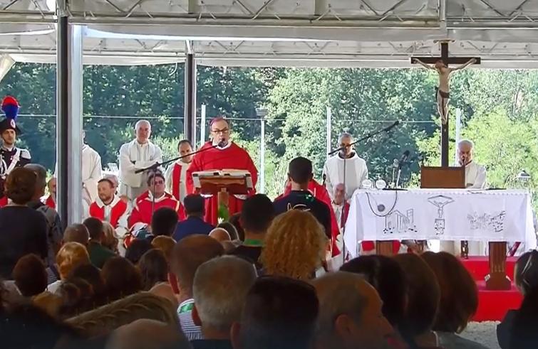 “Lo Stato continui a darci una mano”. Prima della benedizione finale mons. Pompili ha voluto rivolgere un ringraziamento alle Istituzioni, “allo Stato, nella persona del presidente della Repubblica che ha inviato una corona, e al presidente del Consiglio dei Ministri la gratitudine per la vicinanza e per l’azione, così come vorrei ringraziare il Commissario straordinario e ancora il capo della Protezione civile presente e precedente e il Governatore della Regione Lazio. Vorrei esprimere questo ringraziamento perché lo Stato nelle sue diverse istituzioni possa continuare a darci una mano. Così come ringrazio esplicitamente i tanti, tantissimi volontari nelle più diverse espressioni che non ci hanno fatto mai mancare la loro vicinanza e anche a loro di continuare a restare insieme”.