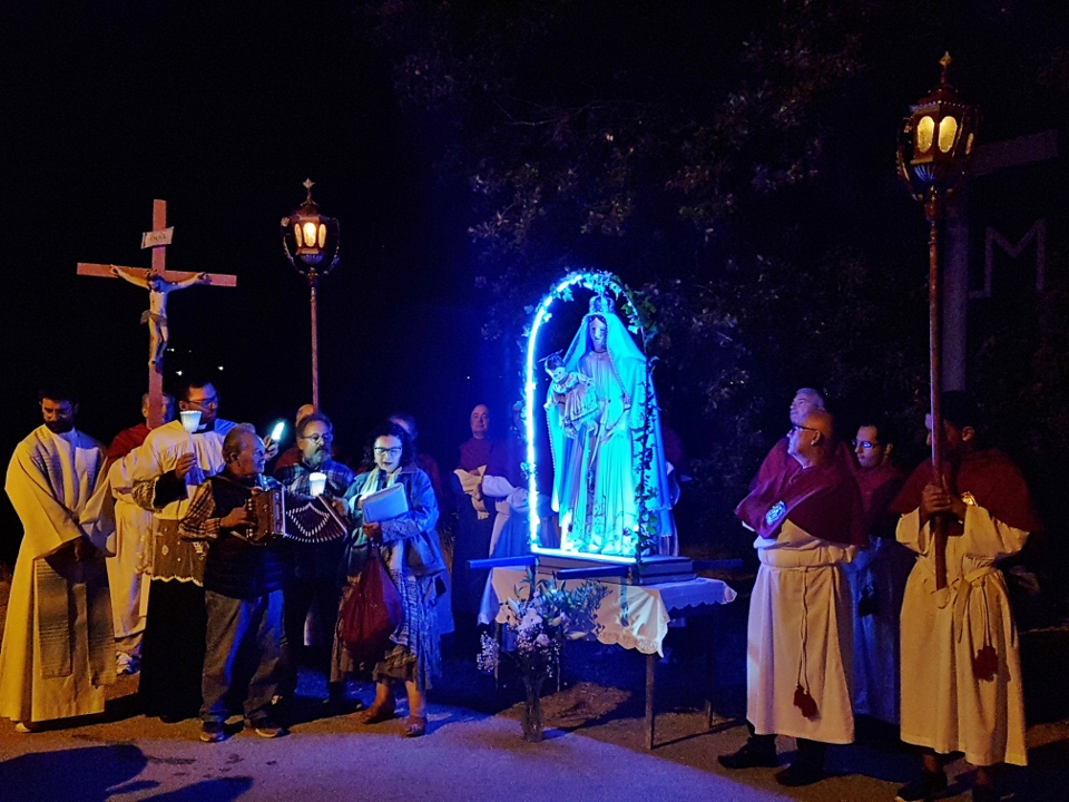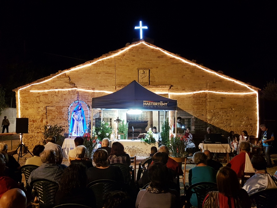 RIPATRANSONE – È iniziata a Ripatransone la tradizionale festa in onore della Vergine Maria nella frazione Petrella. Questo periodo di festeggiamenti si è aperto giovedì 24 con la celebrazione eucaristica alle ore 21:00, presieduta dal parroco Don Gian Luca Rosati, cui è seguita una fiaccolata per le vie circostanti la chiesetta quattrocentesca. Ad accompagnare l’antico simulacro della Madonna le confraternite di Ripatransone e tanti fedeli che hanno partecipato col canto e la preghiera. Quest’anno c’è stata poi anche la gradita presenza del trio “Stornellatori cuprensi” che hanno eseguito con l’accompagnamento dell’organetto, alcuni canti mariani di devozione popolare. Al termine di questo momento che ha visto una grande partecipazione di fedeli, tutti i presenti si sono ritrovati per un momento conviviale offerto dall’organizzazione di festeggiamenti.