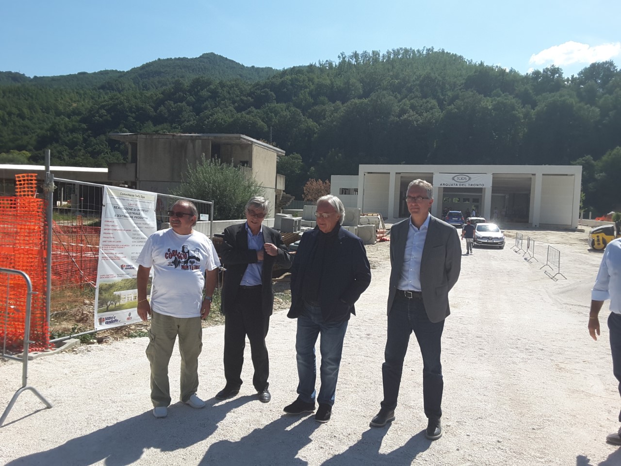 “A dicembre in questa fabbrica usciranno le prime paia di scarpe e questo grazie alla sinergia tra pubblico e privato”. Così Diego Della Valle durante il sopralluogo alla fabbrica Tod’s di Arquata del Tronto con il presidente della regione Luca Ceriscioli, il commissario Vasco Errani, il sindaco di Arquata del Tronto. Duemila metri quadrati il manufatto, “un ringraziamento – spiega Ceriscioli- per la famiglia della Valle che sta portando avanti coerentemente l’impegno che aveva preso: quello di creare posti di lavoro ad Arquata del Tronto. I lavori della fabbrica procedono, sono stati anche completati i lavori del genio civile regionale per la messa in sicurezza del fiume, opere necessarie per poter attivare questa attività e liberare queste aree anche per ulteriori opportunità. Molto importante anche l’impegno di Della Valle ad invitare altre imprese a seguire il suo esempio e investire in questo territorio. In questo stesso luogo un anno fa non c’era la chiesa definitiva fatta dalla curia con le donazioni, non c’erano le Sae per i cittadini che oggi sono rientrati, non c’era questo manufatto e il fiume non aveva le protezioni. Oggi il fiume è protetto, c’è un manufatto ci sono le casette, la chiesa e presto ci saranno anche le attività commerciali. Un bel segno di rinascita per un territorio così duramente colpito”.