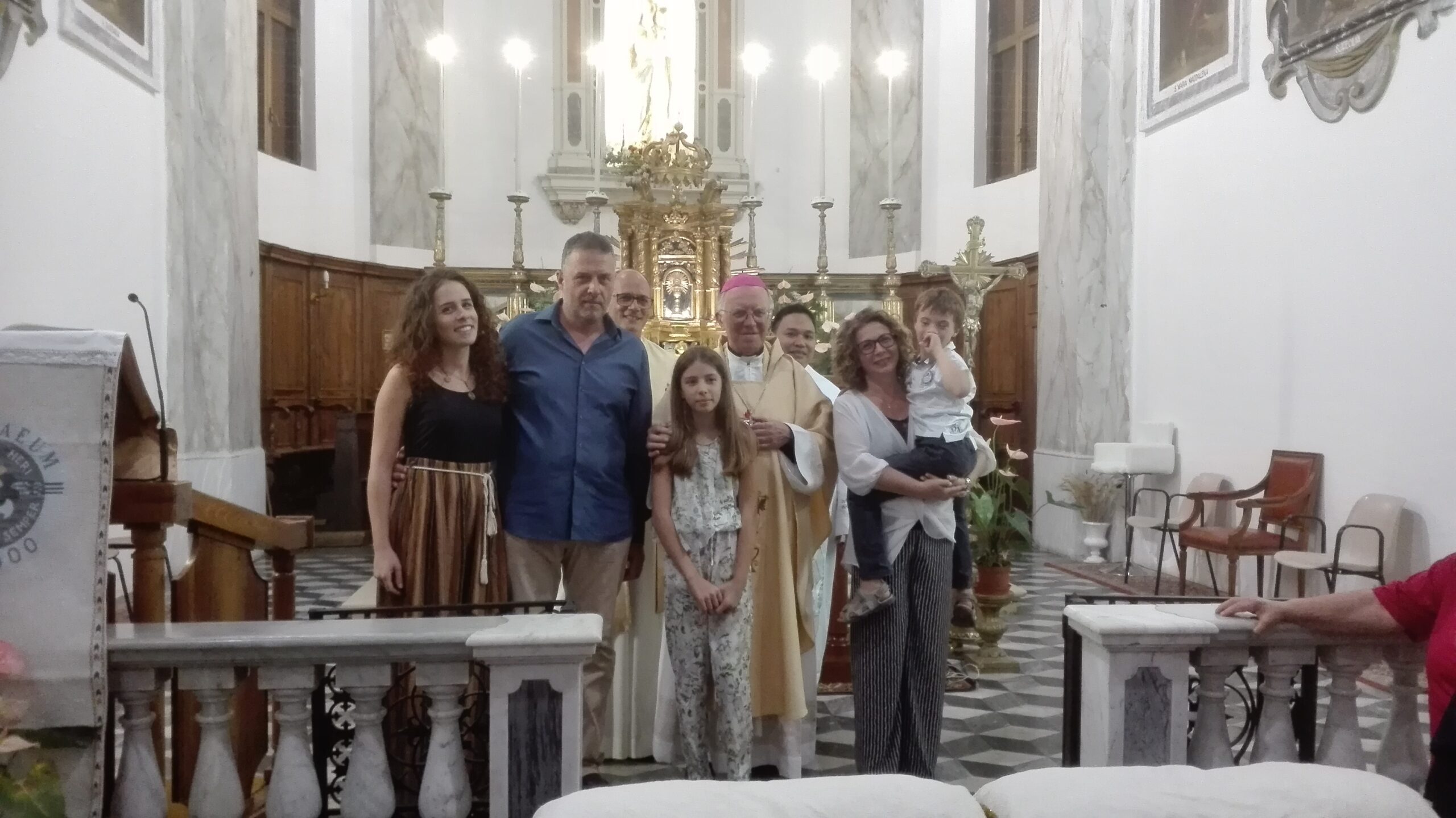 ACQUAVIVA PICENA – Ad Acquaviva Picena sabato 9 settembre presso la chiesa di san Lorenzo dei frati agostiniani, Piera Rossi e Maurizio Amadio hanno festeggiato venticinque anni di matrimonio. Coppia conosciutissima e amata in tutto il paese, tanto che molti sono stati gli amici, oltre ai parenti, a voler festeggiare insieme a loro le nozze d’argento. La Celebrazione Eucaristica è stata presieduta da Sua Eccellenza Mons. Gestori e concelebrata dal parroco don Alfredo. Al termine è stato offerto un buffet a tutti i presenti. Piera è socia dell’oleificio Bruni-Rossi sito in Acquaviva mentre Maurizio è Maresciallo Maggiore nell’Arma dei Carabinieri, la coppia si è unita nel Sacro Vincolo del Matrimonio il 6 settembre 1992 nella chiesa di san Niccolò ad Acquaviva, a celebrare le nozze l’allora parroco don Angelo Palmioli. Il Signore ha poi benedetto la coppia con la nascita di quattro figli: Federica, Antonio, Maria Lucia e Lorenzo. Loro sono l’esempio di una famiglia unita, semplice e felice, una di quelle coppie che non attirano l’attenzione perché non hanno nulla di spettacolare per la società, ma che si regge su solidi valori come l’amore vero, la fede, la solidarietà, il sostegno reciproco, il quotidiano sorridere davanti ai problemi di tutti i giorni e molto altro ancora, qualità che invece sono più spettacolari di tante vanità. Una coppia che ha sempre seguito il cammino tracciato dal Signore e a lui continua ad affidarsi sapendo di non rimanere delusi.