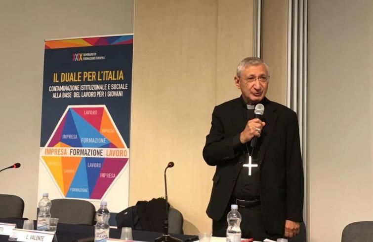 È una riflessione sul “lavoro degno” quella proposta da monsignor Filippo Santoro, arcivescovo di Taranto e presidente della Commissione episcopale per i problemi sociali e il lavoro, la giustizia e la pace della Cei, intervenendo al XXIX Seminario di formazione europea organizzato da Ciofs-Fp, sul tema “Il duale per l’Italia – Contaminazione istituzionale e sociale alla base del lavoro per i giovani”. Nel suo saluto, mons. Santoro ha messo al centro, anche nell’esperienza duale, il “lavoro degno”. Lavoro degno – ha spiegato – significa in primo luogo lotta al lavoro nero, al lavoro criminale, al lavoro precario, piaghe che non possono continuare a essere l’unica prospettiva per molte persone. Il vescovo ha poi ricordato che lavoro degno, lavoro femminile e innovazione tecnologica sono tematiche che verranno affrontate nel corso della 48ª Settimana sociale dei cattolici italiani (Cagliari, 26-29 ottobre) e diventano uno spunto ideale e valoriale per la prosecuzione del lavoro di allineamento tra scuola, formazione professionale e mondo del lavoro.