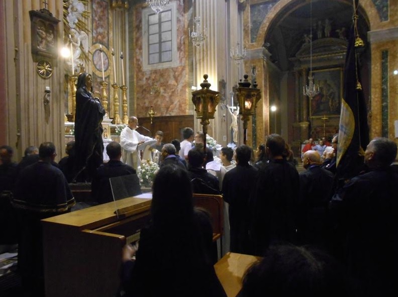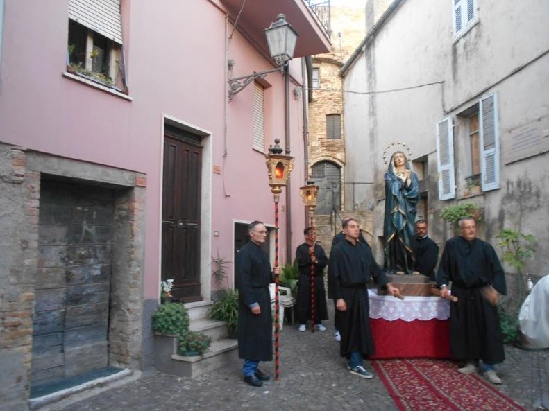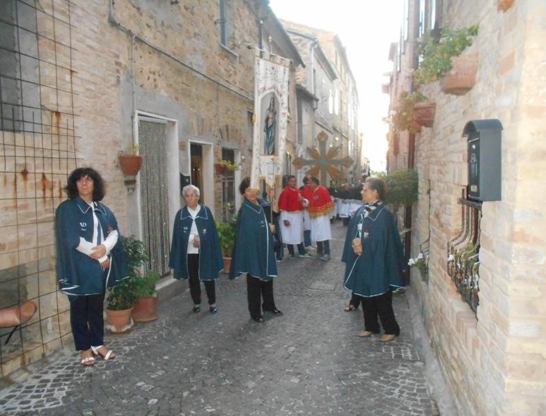 ACQUAVIVA PICENA – Domenica 17 settembre alle ore 9:00 i membri della “Confraternita del Cristo Morto e Madonna Addolorata” si sono riuniti per partecipare insieme alla santa Messa presieduta dal parroco don Alfredo. Hanno poi vissuto un momento di convivialità pranzando tutti insieme. Dopo la Messa delle 18:30 celebrata da padre Emil e animata dai ragazzi che il prossimo 23 settembre riceveranno il Sacramento della Cresima, si è snodata la solenne processione in onore della Madonna Addolorata. Alla processione hanno partecipato anche i cresimandi con le educatrici Patrizia ed Erika, pregando il rosario e leggendo le meditazioni. Anche le altre Confraternite hanno preso parte al pio esercizio insieme alla comunità. Un doveroso ringraziamento all’Arma dei Carabinieri per essersi occupati della viabilità in modo da permettere il tranquillo svolgimento della processione.