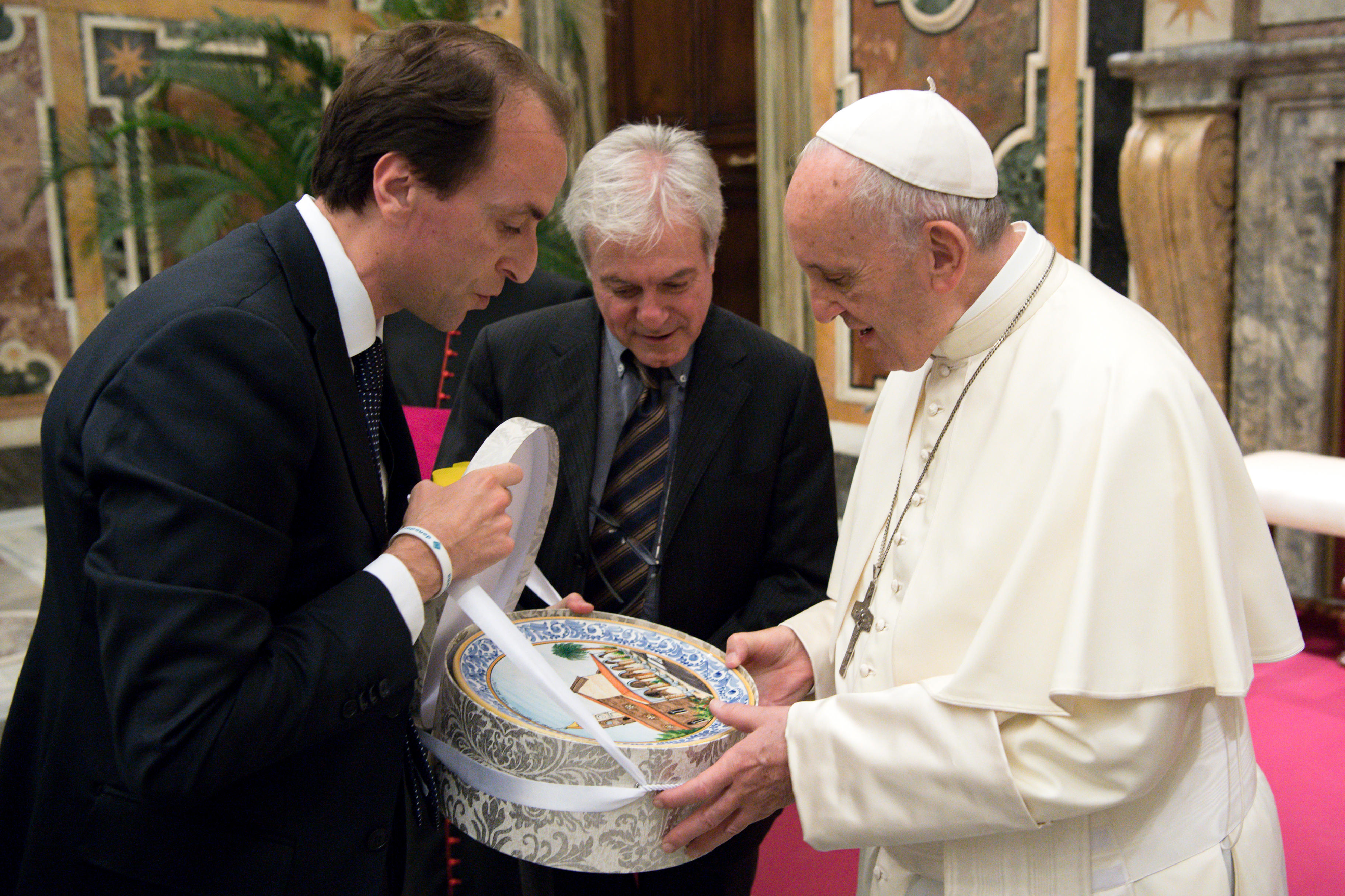 Alla cerimonia hanno preso parte insieme ai ragazzi, la Dirigente Scolastica Professoressa Barbara Rastelli e i docenti dell’Istituto, con il Sindaco di Martinsicuro Massimo Vagnogni, il quale ha recato in dono al Pontefice un piatto in ceramica di scuola Castellana raffigurante la chiesa parrocchiale del Sacro Cuore di Gesù.