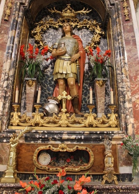 In essa sono leggibili notizie, ricostruite dall’esperto sacerdote Michettoni che fu parroco della vecchia Chiesa della Madonna della Marina. La morte di Benedetto avvenne all’età di 28 anni, quando regnavano gli Augusti Consoli Diocleziano e Massimiano. La data più probabile del martirio va ricercata negli anni 303 e 305, quando si abbattè sull’Impero Romano l’ultima grande ondata di persecuzioni.In questo periodo quattro successivi editti, di particolare durezza, colpirono i cristiani. Il quarto, emanato nella primavera del 304, estese l’ordine a tutta la popolazione di “sacrificare agli dei”, mostrando la radicalità dell’azione di Diocleziano. I cristiani furono sottoposti a torture di ogni genere e molti furono uccisi.L’ordine giunse con qualche mese di ritardo anche nell’ager Cuprensis, dove a presiedere questa piccola unità amministrativa doveva esserci un dux di nome Grifus. Qui prestava servizio militare il nostro Benedetto. Furono proprio i soldati ad essere trattati più severamente, molti provarono il carcere. Fra questi era il Nostro, come ci spiega un toponimo che indica nell’antica Civita di Cupra “la prigione di S.Benedetto”.