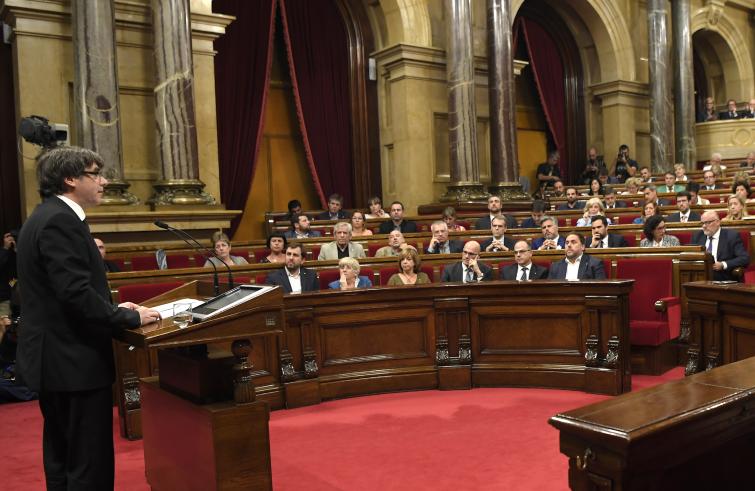 Martedì 10 ottobre. Alle 19.11, più di un’ora di ritardo rispetto al previsto, al Parlament de Catalunya inizia una sessione che ha suscitato uno straordinario interesse. Più di mille giornalisti (300 stranieri) sono arrivati per essere testimoni in diretta dell’annunciata dichiarazione d’indipendenza della Catalogna. Fuori dell’edificio, circondato da un cordone di sicurezza della polizia, una folla non piccola d’indipendentisti aspetta trepidante di sentire il presidente catalano, Carles Puigdemont, pronunciare le parole tanto desiderate: Repubblica catalana indipendente. Il ritardo nell’orario – si capirà più tardi – è stato causato da alcuni disaccordi da parte della CUP, un gruppo parlamentare minoritario, ma con grande incidenza in tema d’indipendentismo.